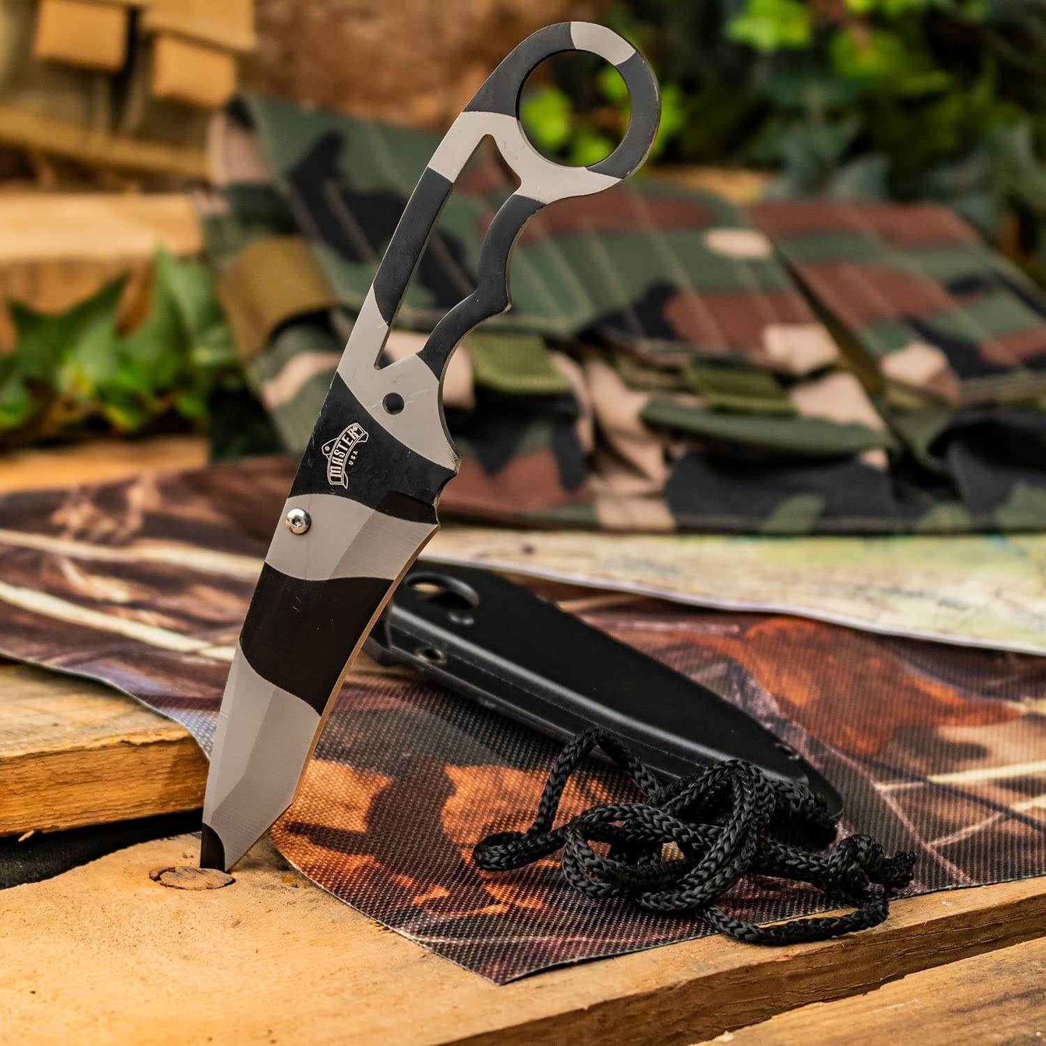 Master USA MU-1119UC Tactical Neck Knife, Urban Camo Blade, Steel Handle, 6.75-Inch Overall—